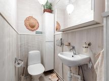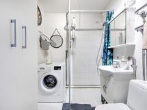 - Kylpyhuone, erillinen wc, suihku, suihkuseinä, peilikaappi, allaskaappi, pesukoneliitäntä.