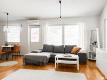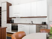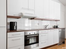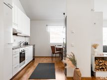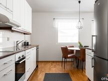- Keittiön varusteet: Jääkaappipakastin, erillisuuni, liesi, astianpesukone ja liesituuletin. Liesi: Keraaminen liesi. Työtason materiaali: Laminaatti.