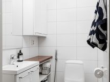 - Pesutilojen varusteet: WC-istuin, suihku, suihkuseinä ja lattialämmitys. Erillisten WC:n lukumäärä: 1. Erillisen WC:n varusteet: WC-istuin, lattialämmitys, peili, pesuallas, allaskaappi ja bidee-suihku.