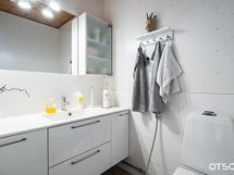 Pesutilojen varusteet: Pesukoneliitäntä, suihku ja lattialämmitys. Erillisten WC:n lukumäärä: 1. Erillisen WC:n varusteet: WC-istuin.