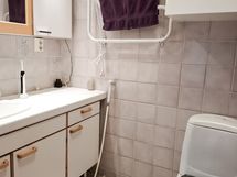 Kodinhoitohuone: pesukoneliitäntä, lattialämmitys, pöytätaso, uloskäynti