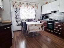 Varusteet: jääkaappi, pakastin, astianpesukone. Työtaso: laminaattitaso. Liesi: kaasuliesi. Keittiö uusittu vuonna 2008