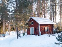 Saunarakennuksen pinta-ala n. 50 m2, jossa tuulettuvaa säilytystilaa.