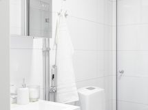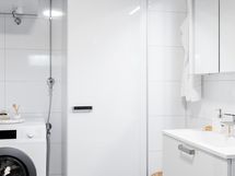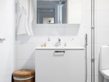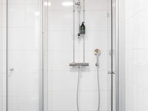 - Pesutilojen kuvaus: Myös yläkerrassa suihku. Varustus: suihkuseinä, pesukoneliitäntä, lattialämmitys, wc-istuin, suihku, peilikaappi, kiinteät valaisimet, kylpyhuonekaapisto. Erillisen WC:n kuvaus: molemmissa kerroksissa kylpyhuoneen yhteydessä (ei erillisiä).
