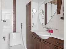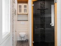 - Pesutilojen kuvaus: Alakerrassa pesutilat wc:n yhteydessä, ulkorakennuksessa toiset pesutilat saunan yhteydessä. Varustus: pesukoneliitäntä, lattialämmitys, wc-istuin, suihku, kylpyhuonekaapisto. Erillisen WC:n kuvaus: Erilliset wc:t ylä- ja alakerrassa. Alakerran wc:n yhteydessä myös pesutilat sisällä. Varustus: pesukoneliitäntä, lattialämmitys, lattiakaivo, suihku.
