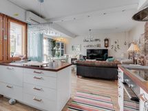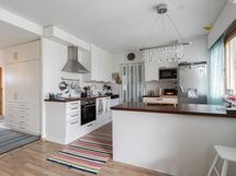 - Jääkaappi, pakastekaappi Kodinhoitohuoneessa, induktioliesi, liesituuletin, astianpesukone, kaapistot, kiinteät valaisimet. Remontoitu kauttaaltaan, saareke. Puustellin kalusteet.