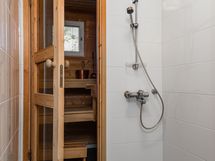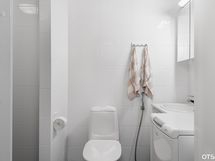- Pesutilojen varusteet: WC-istuin, suihku, pesukoneliitäntä, lattialämmitys, allaskaappi, peilikaappi ja pesuallas.