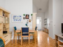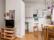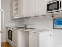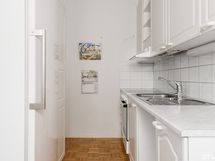 - Keittiön varusteet: Jääkaappi, liesituuletin ja liesi. Liesi: Keraaminen liesi. Työtason materiaali: Laminaatti.