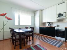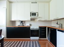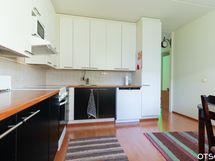 - Keittiön varusteet: Astianpesukone, liesituuletin, jääkaappipakastin ja uuni. Liesi: Keraaminen liesi. Työtason materiaali: Laminaatti. Kaappien ovet uusittu 2018.