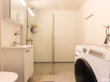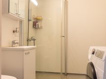 - Pesutilojen varusteet: WC-istuin (Uusittu 2018), peilikaappi, pesukoneliitäntä, suihkukaappi (Uusittu 2018), bidee-suihku ja allaskaappi. Pesutilojen kuvaus: Lattia vaihdettu ja seinät maalattu 2018.