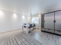 Makuuhuoneissa on kaapistoa. Eteistilassa kalustettu wc.