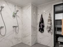 Pesutilojen varusteet: Lattialämmitys ja 2 x suihku. Erillisten WC:n lukumäärä: 2. Erillisen WC:n varusteet: WC-istuin, lattialämmitys, peili, bidee-suihku, pesuallas, lattiakaivo ja laatikosto.