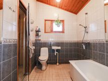 - Varusteet: Kylpyamme, Lattialämmitys, WC, Suihku, Kiinteät valaisimet, Kylpyhuonekaapistot. WC: Wc tilassa lämmivesivaraaja. Varusteet: Lattialämmitys