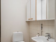 - Pesutilojen varusteet: Suihku ja pesukoneliitäntä. Erillisten WC:n lukumäärä: 1. Erillisen WC:n varusteet: WC-istuin, bidee-suihku, peili, pesuallas, allaskaappi ja lattiakaivo.