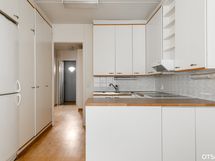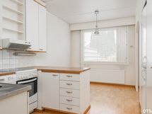- Keittiön varusteet: Jääkaappipakastin, liesi ja astianpesukone. Liesi: Keraaminen liesi. Työtason materiaali: Laminaatti.