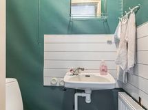 Sauna, puukiuas, kylpyhuone, erillinen wc, suihku, pesukoneliitäntä Kellarissa pukuhuoneessa, lattialämmitys Pesuhuone/sauna, kiinteät valaisimet.