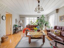 Keittiö: Muovimatto, tapetti. Olohuone: Muovimatto, tapetti. Makuuhuone 1: Muovimatto, tapetti. Makuuhuone 2: Muovimatto, tapetti. Makuuhuone 3: Muovimatto, tapetti. Sauna: Betonilattia, Puupaneeli. Kylpyhuone: Betonilattia, Puupaneeli. Eteinen: Muovimatto, maali. Wc: Kaakeli, maali.