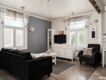 Pinta-alan peruste: Ei tarkistusmitattu. Pinta-alat saattavat tämän ikäisissä kohteissa (rekisteröity ennen 01.01.1992) poiketa olennaisestikin asuinrakennusten nykyisten mittaustapojen ja standardien (SFS 5139) mukaan laskettavasta asuintilojen pinta-alasta. Pinta-ala voi siis olla edellä mainittua pienempi tai suurempi. Pinta-ala noin arvio.
