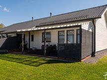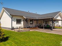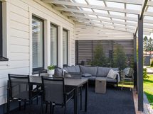 Suuret ikkunat tuovat runsaasti luonnonvaloa ja avautuvat rauhoittavaan peltomaisemaan – oma takapiha rajautuu suoraan luonnon äärelle, tarjoten yksityisyyttä ja omaa rauhaa. Viihtyisä katettu terassi koko talon leveydeltä suojaa auringolta ja sateelta.