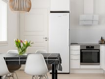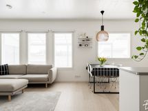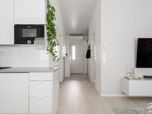 Tämä koti tarjoaa toimivan pohjaratkaisun kahdella makuuhuoneella sekä avaralla, yhtenäisellä olohuone- ja keittiötilalla, jossa arki soljuu sulavasti. Valoisat pintamateriaalit luovat raikkaan ja ajattoman ilmeen, joka miellyttää vaativampaakin sisustajaa. Toisaalta myös värimaailman päivittäminen oman maun mukaan pienellä vaivalla on helppoa, eikä vaadi isoja kustannuksia!