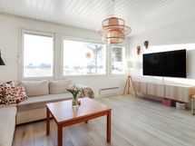 Pohjaratkaisu on selkeä ja käytännöllinen: kolme makuuhuonetta, valoisa olohuone, keittiö, kodinhoitohuone, pesuhuone ja sauna sekä kaksi erillistä wc:tä. Tilat soveltuvat erinomaisesti niin lapsiperheelle kuin etätyötä tekevälle.