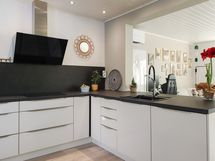 Liesi: erillisuuni, liesitaso. Kylmäsäilytys: jääkaappi/pakastin. Varustus: mikroaaltouuni, astianpesukone, liesituuletin / hormi.