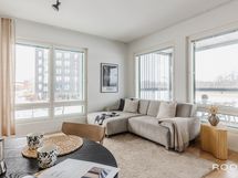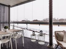 - Parvekkeelta voit nauttia ainutlaatuisista näkymistä joelle ja vehreään Kirjurinluotoon – maisema, joka vaihtuu kauniisti vuodenaikojen mukaan.