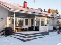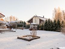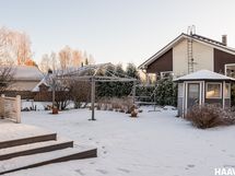 Vehreä ja tilava piha rajoittuu kaupungin puistoalueeseen, tarjoten rauhalliset ja luonnonläheiset näkymät. Katettu terassi ja suojaisa tontti luovat mukavasti yksityisyyttä ja viihtyisän ympäristön oleskeluun. Pihapiirissä sijaitsee myös pihavaja puutarhatarvikkeille sekä autotallirakennus, jossa on ilmalämpöpumppu.