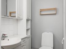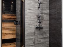 - Sauna, sähkökiuas, erillinen wc, suihku, peilikaappi, allaskaappi, pesukoneliitäntä, lattialämmitys, kiinteät valaisimet.