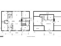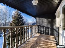 Yläkerrassa on tilava oleskelutila, kaksi makuuhuonetta, josta toisesta makuuhuoneesta käynti parvekkeelle, ylhäällä on myös iso vaatehuone.