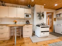 Liesi: sähköliesi. Kylmäsäilytys: jääkaappi, pakastin. Varustus: liesituuletin, astianpesukone.