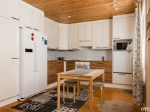- Keittiön varusteet: Astianpesukone, jääkaappipakastin (Side by side), liesituuletin, erillisuuni ja liesi. Liesi: Induktioliesi. Työtason materiaali: Kivi.
