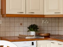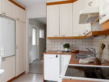 - Kylmäsäilytys: jääkaappi, pakastin. Varustus: liesituuletin, astianpesukone. Keittiön kaapistot uusittu v. 2003, laminaatti, tapetit sekä listat uuusittu v.2018.
