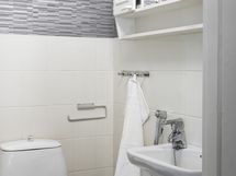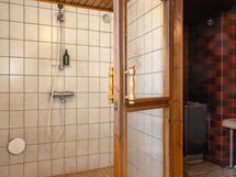 - Pesutilojen kuvaus: Pesuhuone laatoitettu 80-luvulla. Varustus: lattialämmitys, suihku.