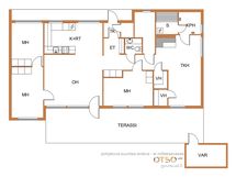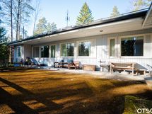 Tämä kodikas kokonaisuus tarjoaa toimivat tilat ja luonnonläheistä asumista parhaimmillaan. Talossa on kaksi makuuhuonetta, erillinen työhuone sekä tunnelmallinen takkahuone, joka kutsuu rentoutumaan vuoden ympäri. Valoisa ja tilava olohuone hurmaa suurilla ikkunoillaan, joista avautuu kaunis metsämaisema – vuodenaikojen mukaan elävä luonnon oma taideteos.