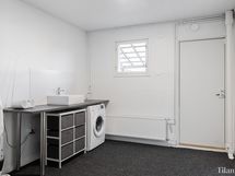 Kodinhoitohuone: uloskäynti, pesuallas, pöytätaso, pesukoneliitäntä
