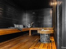 Varusteet: sähkökiuas. Seinämateriaali: paneeliseinä. Lattiamateriaali: laattalattia
