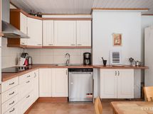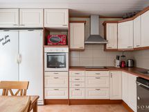 - Keittiön varusteet: Jääkaappi, erillinen pakastin, astianpesukone, liesituuletin ja erillisuuni. Liesi: Keraaminen liesi. Työtason materiaali: Laminaatti.