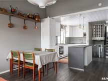 - Keittiön varusteet: Jääkaappi, liesi, liesituuletin, astianpesukone, keittiösaareke ja jääkaappipakastin. Liesi: Induktioliesi. Työtason materiaali: Laminaatti.
