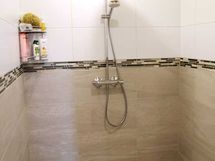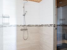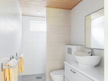 suihku, WC- istuin (seinämalli), allaskaappi, seinäpeili, lattialämmitys
