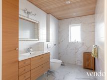 seinät: kaakeli. Erillisten WC:n lukumäärä: 1. Erillisen WC:n kuvaus: alakerran erillis WC:n varustus: kylpyamme/suihkukaappi mahdollisuus, allaskaappi, kaapisto, WC- istuin (seinämalli), lattialämmitys, kiinteät valaisimet