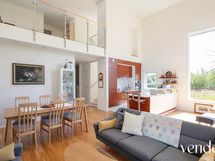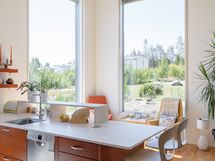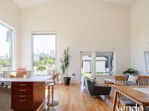 Talon sydän on korkea ja avara olohuone-/ keittiötila, jonka pohjaratkaisu mahdollistaa tilan monipuolisen sisustamisen. Olohuoneen isoissa ikkunoissa on ulkopuolelle asennetut sähkötoimiset screen ikkunaverhot.