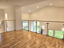 Arkkitehdin perheelleen rakennuttama omakotitalo, joka on suunniteltu huolella mahdollistaen monen kokoisen perheasumisen. Alakerrassa sijaitsee päämakuuhuone ja kaikki talon perustoimintoon liittyvät asiat esteetöntä asumista ajatellen.