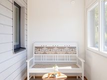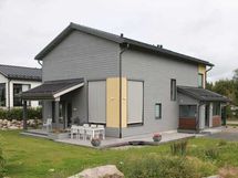Talossa etupihalla on puolilämmin kuisti sisääntulolle ja takapihalla terassikatos, jonka voi lasittaa haluttaessaan.