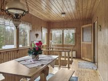 Keittiö: parkettilattia, seinät maali. Olohuone: parkettilattia, seinät tapetti. Makuuhuone 1: parkettilattia, seinät tapetti. Makuuhuone 2: parkettilattia, seinät tapetti. Sauna: lasikuitulattia, seinät paneeli. Kylpyhuone: lasikuitulattia, seinät muovi. Eteinen: parkettilattia, seinät maali. Wc: muovimattolattia, seinät muovitapetti. Veranta: lautalattia, seinät paneeli.
