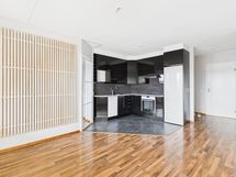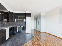 Liesi: induktio, erillisuuni. Työtasot: laminaatti. Kylmäsäilytys: jääkaappi/pakastin. Varustus: liesituuletin, astianpesukone.
