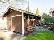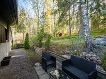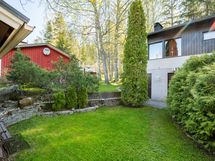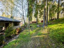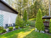 Tontti on 1029 neliön suuruinen ja jakautuu huoliteltuun vehreään alapihaan ja metsäisempään yläpihaan. Alapihalla on erillinen noin 20 neliön suuruinen puuliiteri täynnä koivuhalkoja, jotka jäävät uudelle omsitajalle.