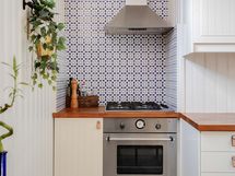 Kaasuliesi, Jääkaappipakastin, Kaapisto, Liesituuletin, Astianpesukone, Erillisuuni