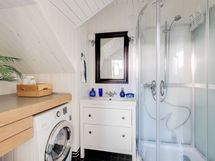 Suihku, Pesukoneliitäntä, Mukavuuslattialämmitys, Tilaa pesukoneelle, Allas, WC-istuin, Lämminvesivaraaja, Peili, Suihkukaappi