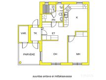 - Pinta-alan peruste: Isännöitsijäntodistuksen mukainen. Ei tarkistusmitattu. Pinta-alat saattavat tämän ikäisissä kohteissa (yhtiö rekisteröity ennen 01.01.1992) poiketa olennaisestikin asuinrakennusten nykyisten mittaustapojen ja standardien (SFS 5139) mukaan laskettavasta asuintilojen pinta-alasta. Pinta-ala voi siis olla edellä mainittua pienempi tai suurempi.